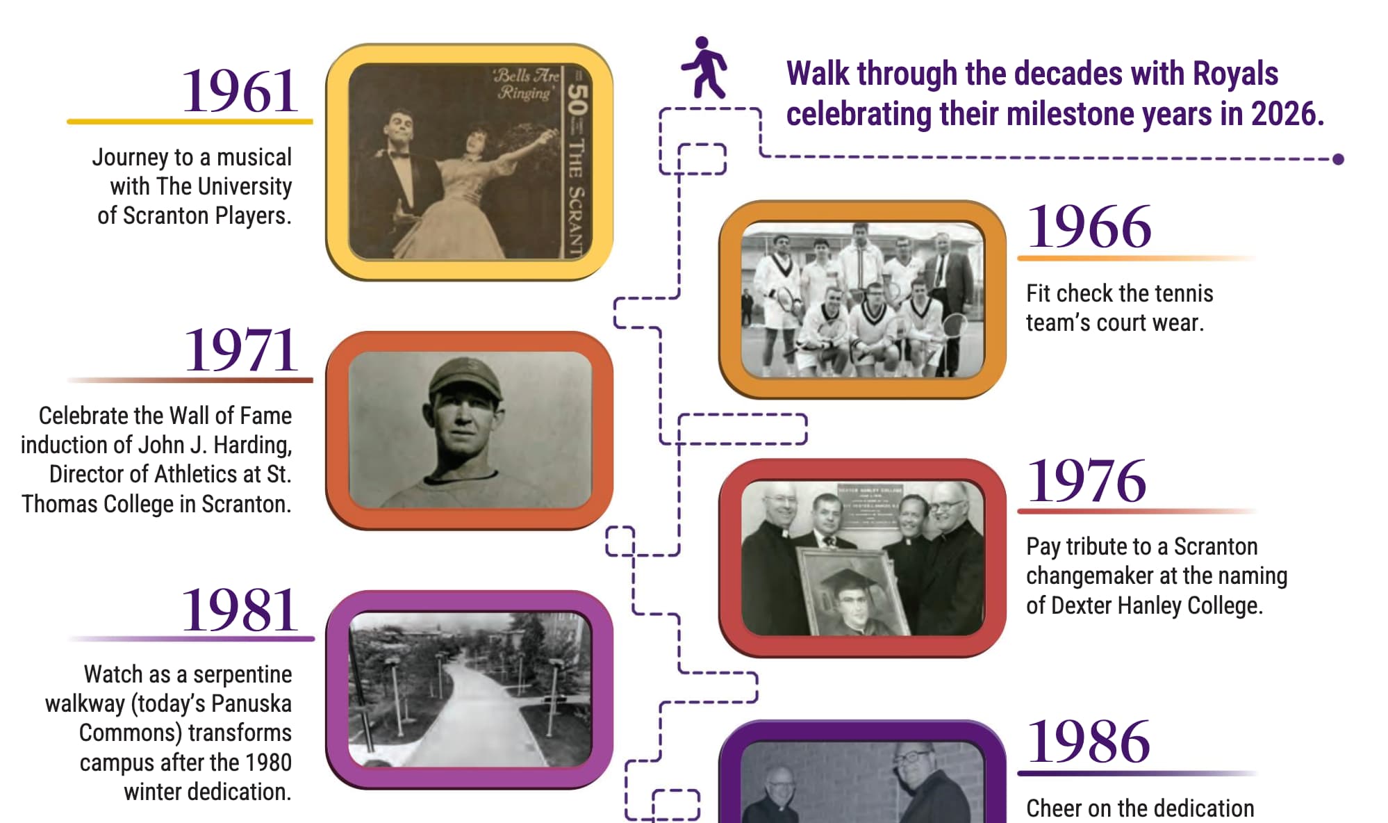 Time capsule: Take a walk through history, with highlights on Royal classes celebrating their milestone years in 2026. From fitness to fit checks, musical theater to campus transformations, the photos and details bring to life events that occurred during those anniversary years.